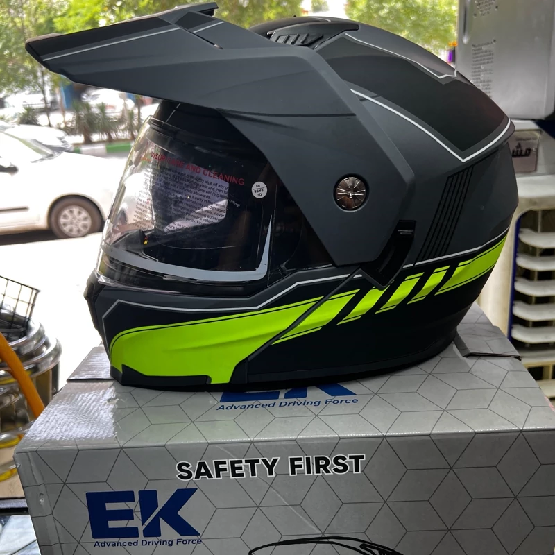 کلاه کاسکت فک متحرک EK مشکی فسفری (پس کرایه)